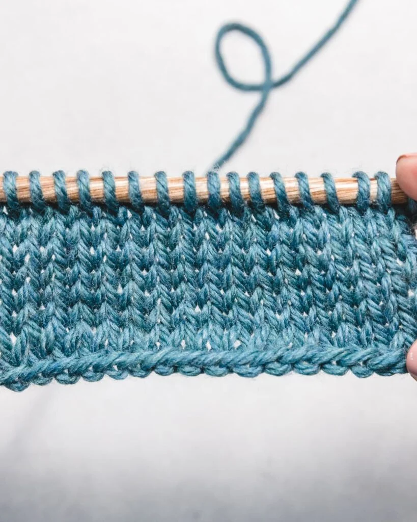 The stockinette stitch is one of the most classic and versatile stitches in knitting, known for its smooth, V-shaped pattern on the front and a soft, bumpy texture on the back. Created by alternating rows of knit stitches on the right side and purl stitches on the wrong side, it produces a sleek fabric that’s perfect for garments, accessories, and home décor. Stockinette drapes beautifully and showcases hand-dyed yarns, letting their colors shine. While simple enough for beginners to master, it also serves as a foundation for countless advanced techniques, making it a favorite for knitters of all skill levels.